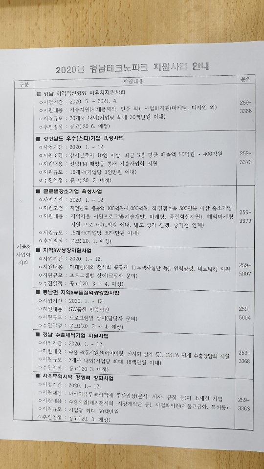 2020년경남TP 에서 지원사업 안내